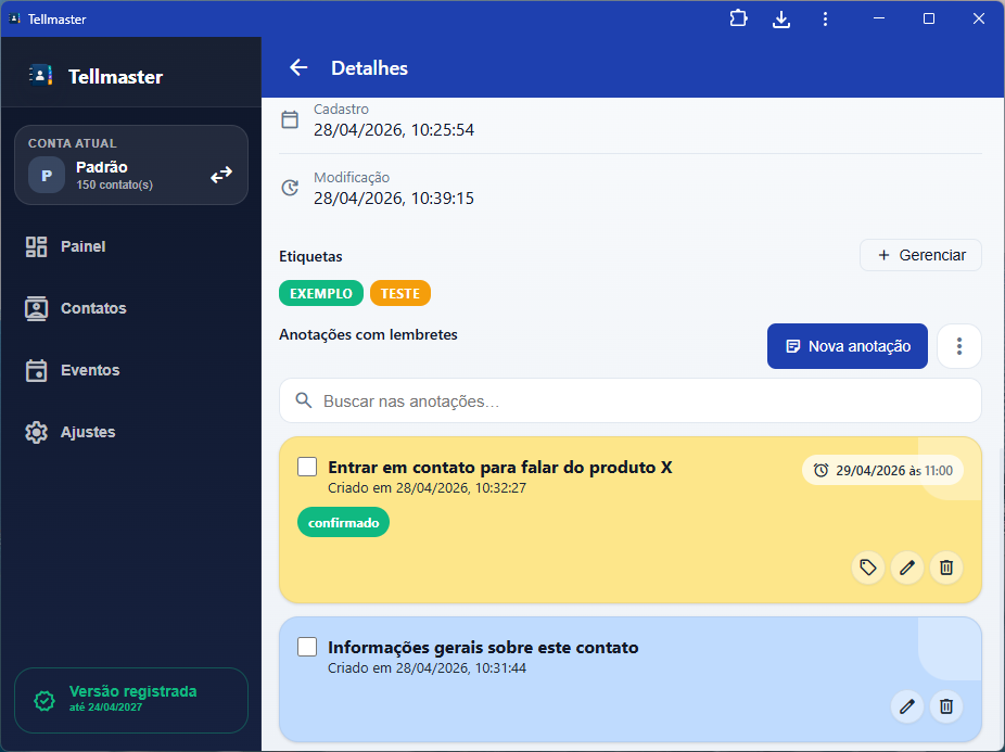 - Defina e encontre anotações feitas nos seus contatos