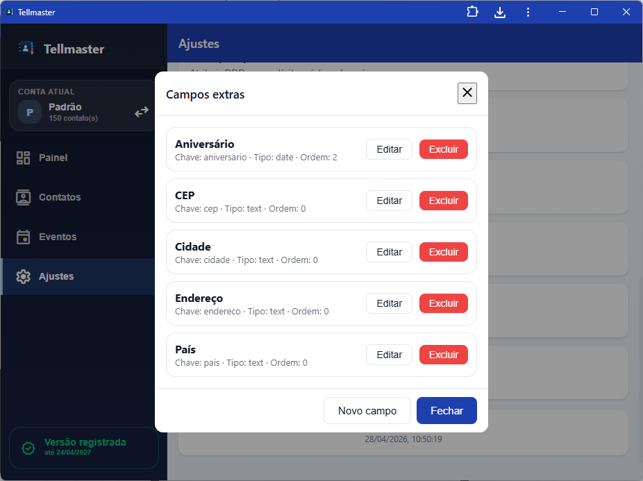 - Adicione quantos campos extras quiser;