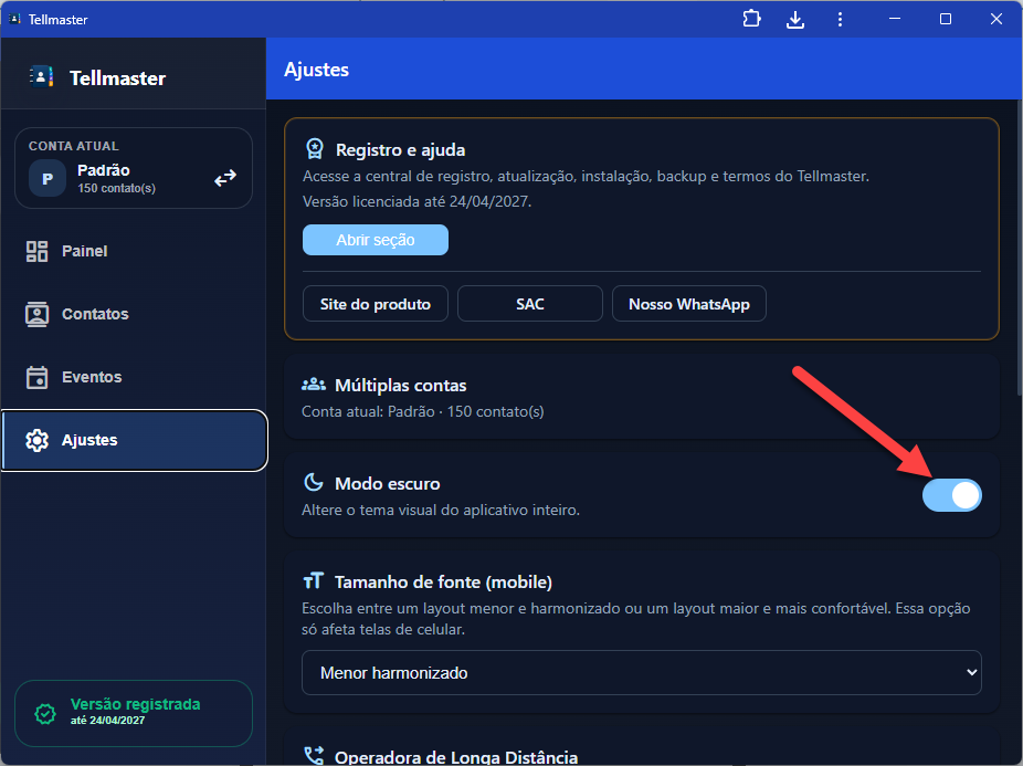 A proposta central você continuar com a agenda nativa do celular quieta, sem bagunçar tudo, e importa para o Telmaster apenas os contatos que quer trabalhar. A partir daí ganha organização por etiquetas, importação de várias fontes, filtros, anotações, lembretes, eventos, mensagens salvas, envio por WhatsApp/e-mail, operações em massa, exportação, backup, múltiplas contas e tem versão instalável em todos os dispositivos: Windows, Android, iOS, Web, Mac OS, Linux.