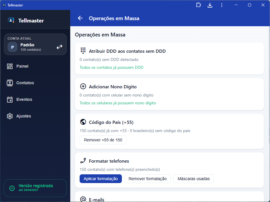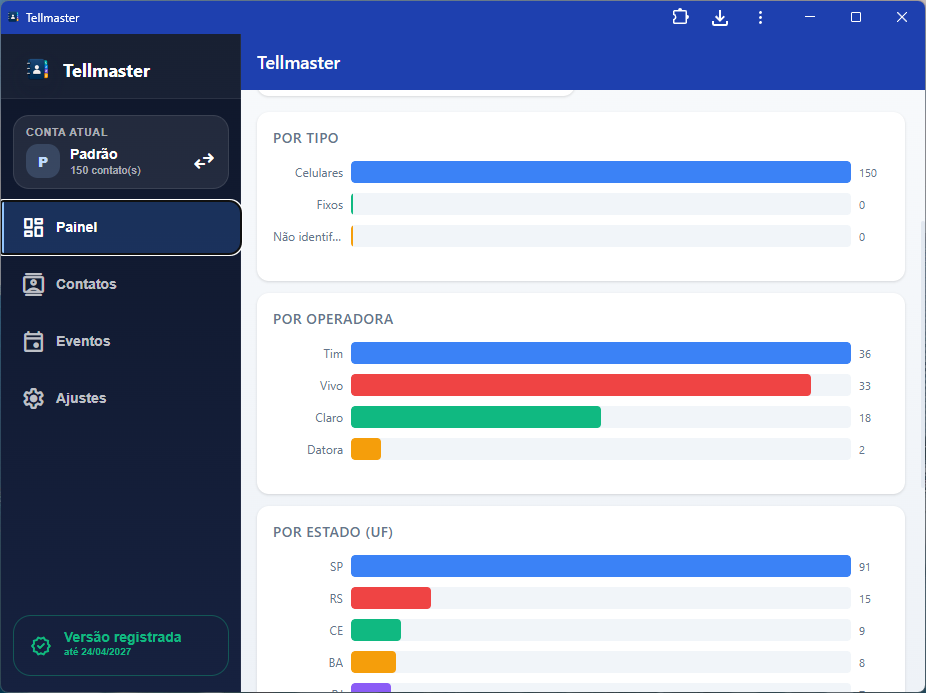 - Ao importar, o sistema classifica por tipo (fixo ou celular), operadora inicial, UF, DDD etc.;