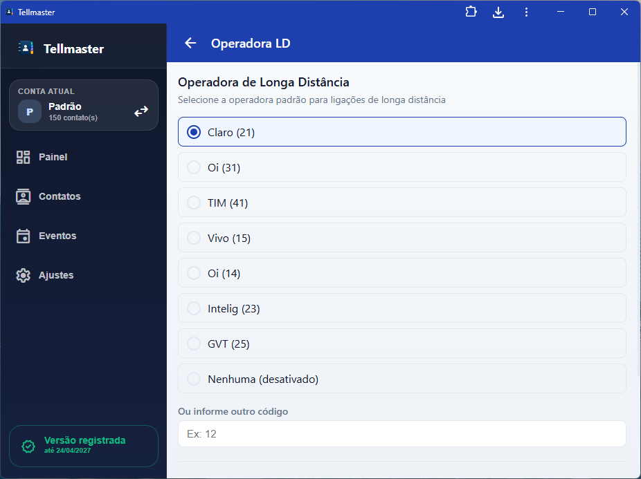 - Configure uma operadora de longa distância com um toque;
