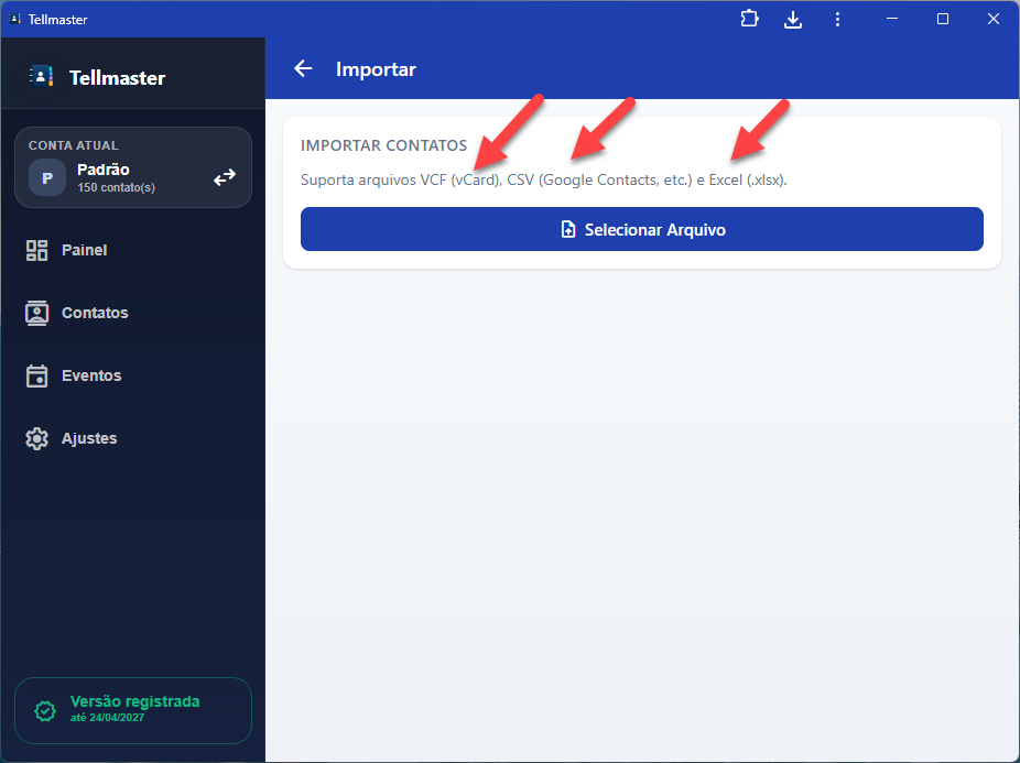 - Importe contatos facilmente da agenda de seu celular ou de arquivos do Excel, VCF, CSV;