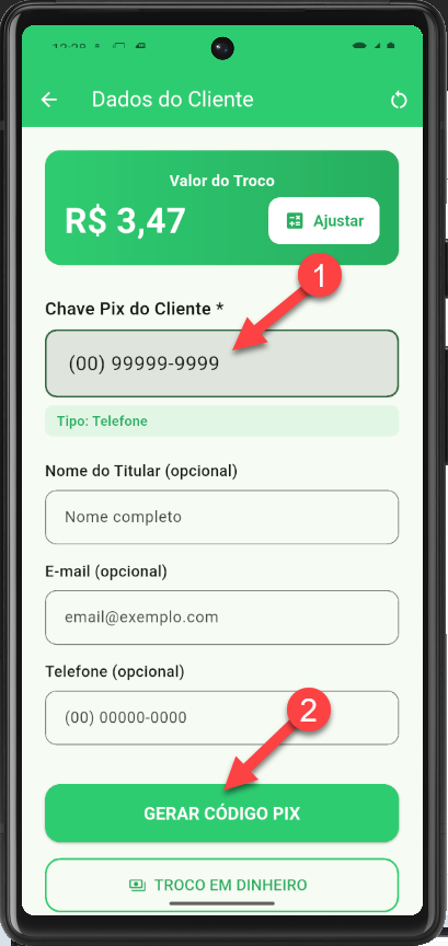 2- Informe no app a chave Pix de seu cliente;